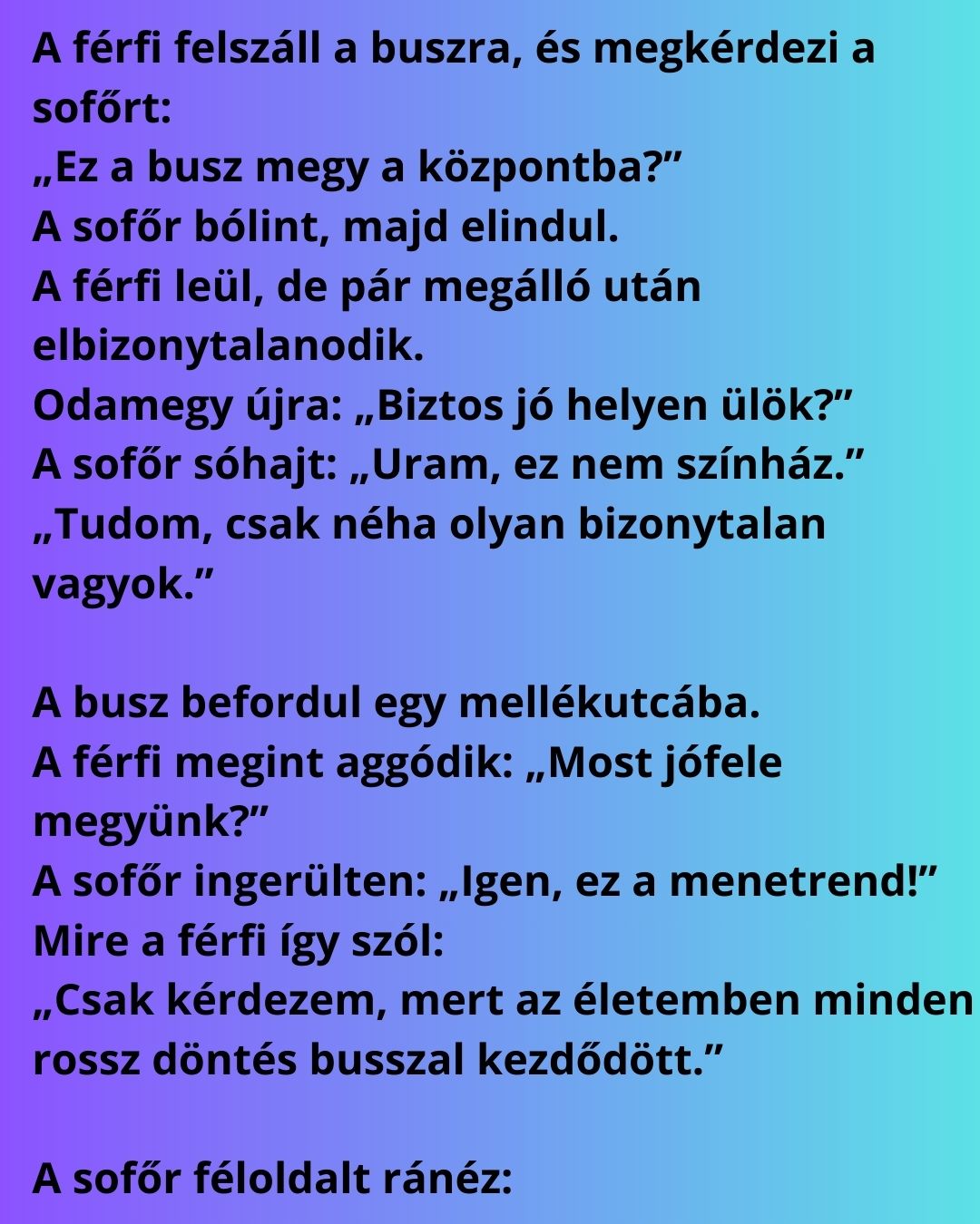 A férfi felszáll a buszra, és megkérdezi a sofőrt: