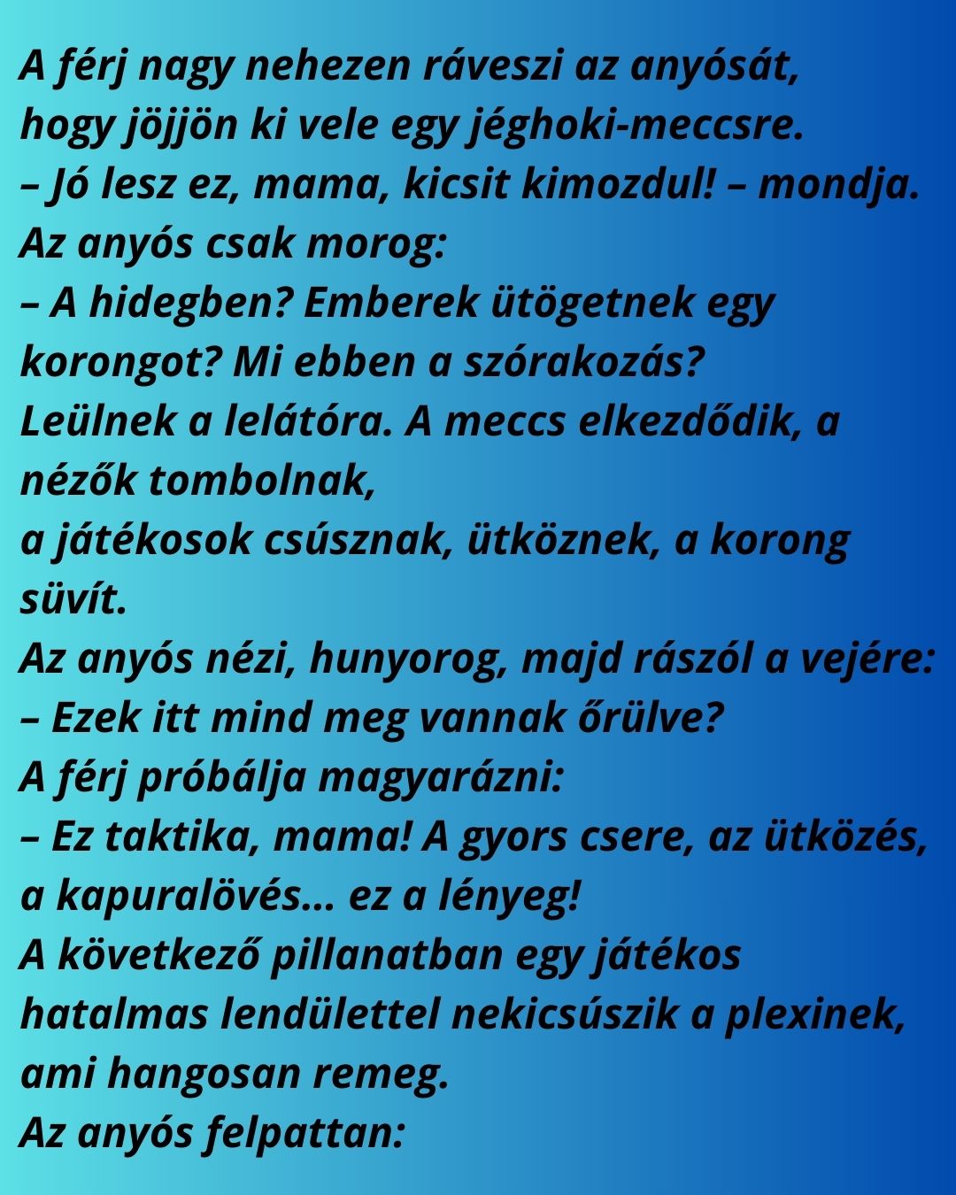 – Mama, ez még semmi. A legjobb részt akkor látja majd, amikor verekedés lesz.