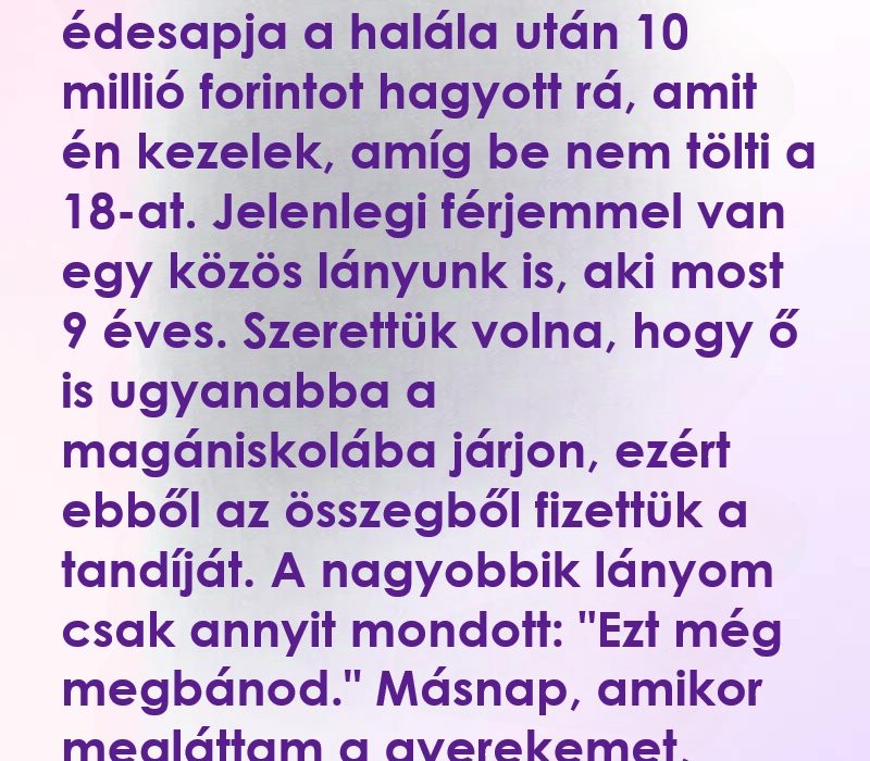 Édesapja, aki már nincs velünk, 10 millió forintot hagyott rá. Ezt az összeget én kezelem neki, amíg betölti a 18. életévét.