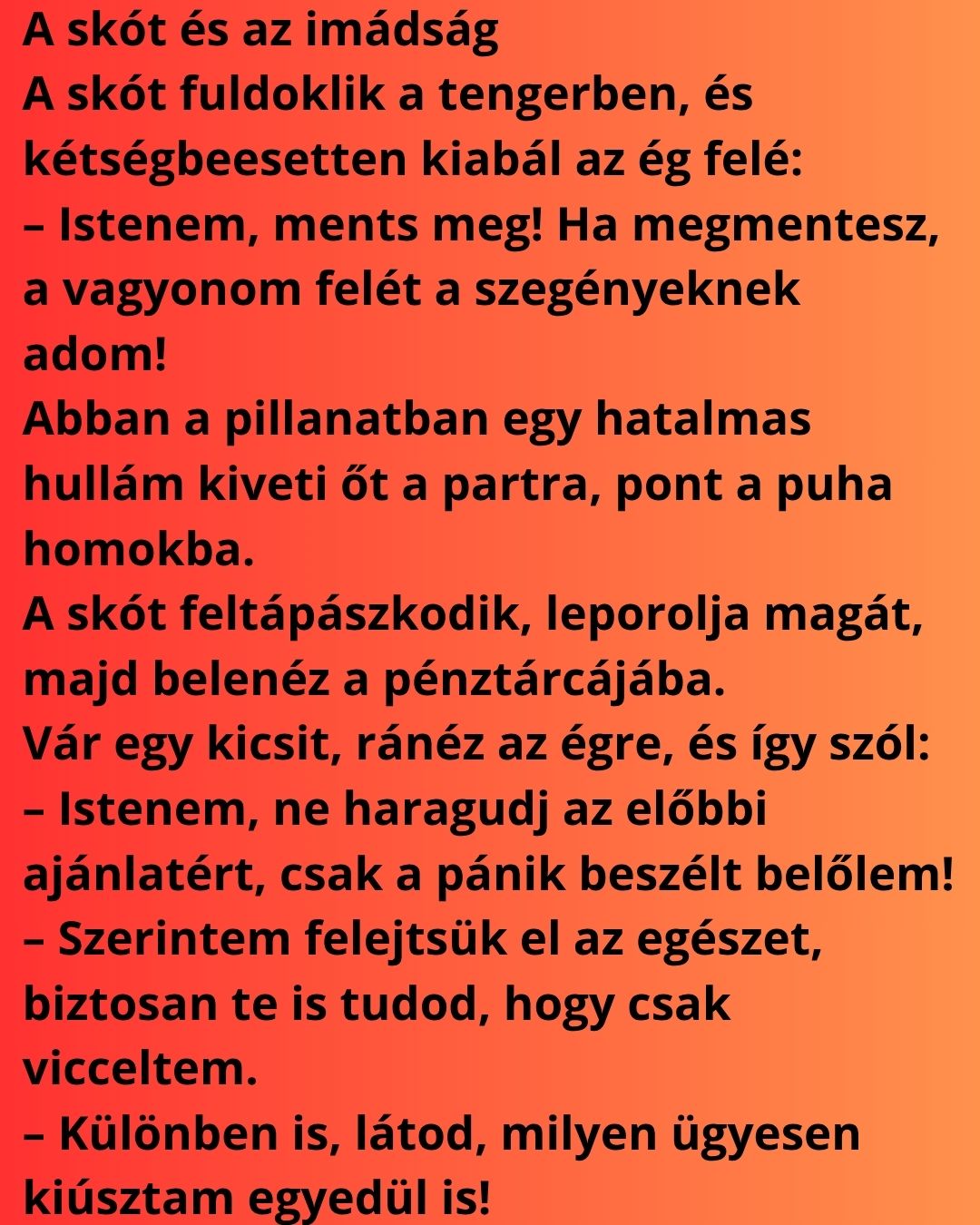 – Istenem, ments meg! Ha megmentesz, a vagyonom felét a szegényeknek adom!