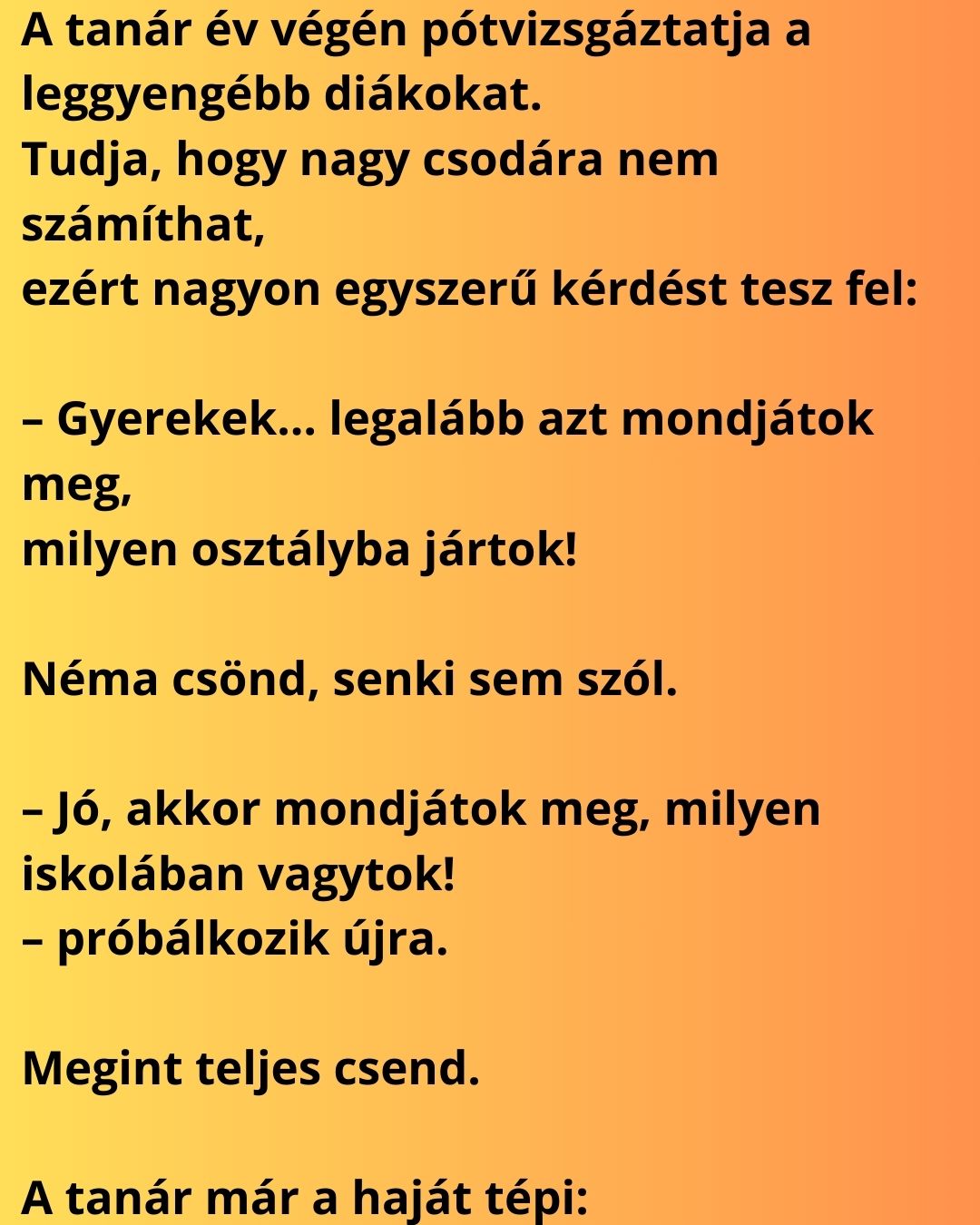 – Jó, akkor mondjátok meg, milyen iskolában vagytok!