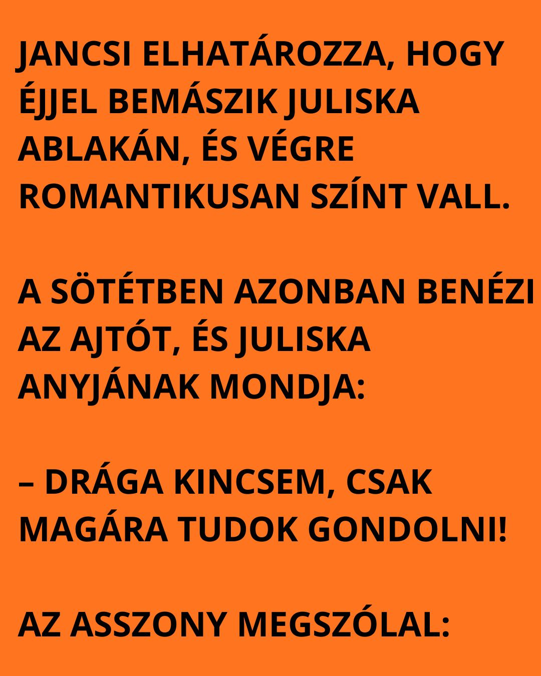 Jancsi elhatározza, hogy éjjel bemászik Juliska ablakán, és végre romantikusan színt vall.
