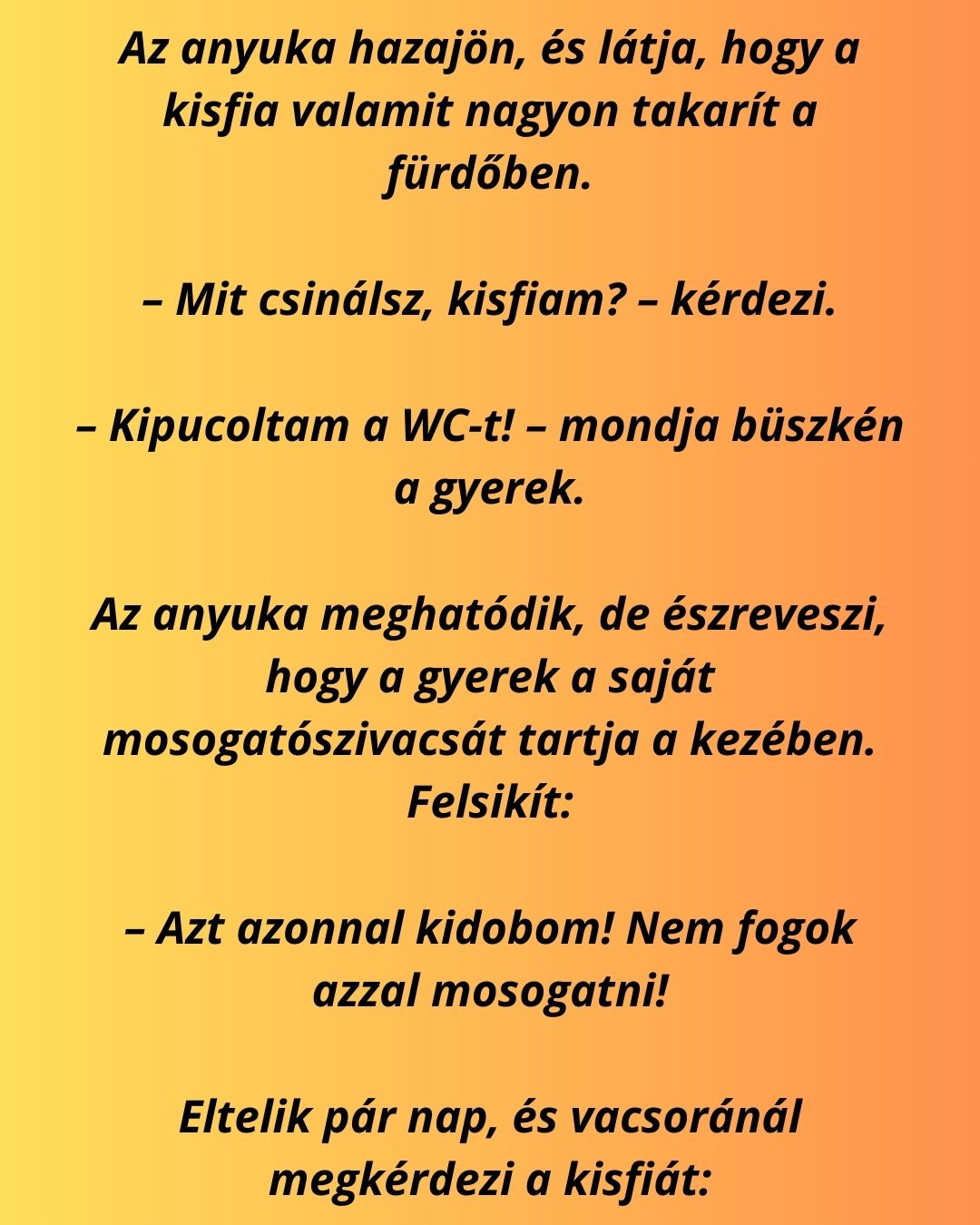 – Kipucoltam a WC-t! – mondja büszkén a gyerek.