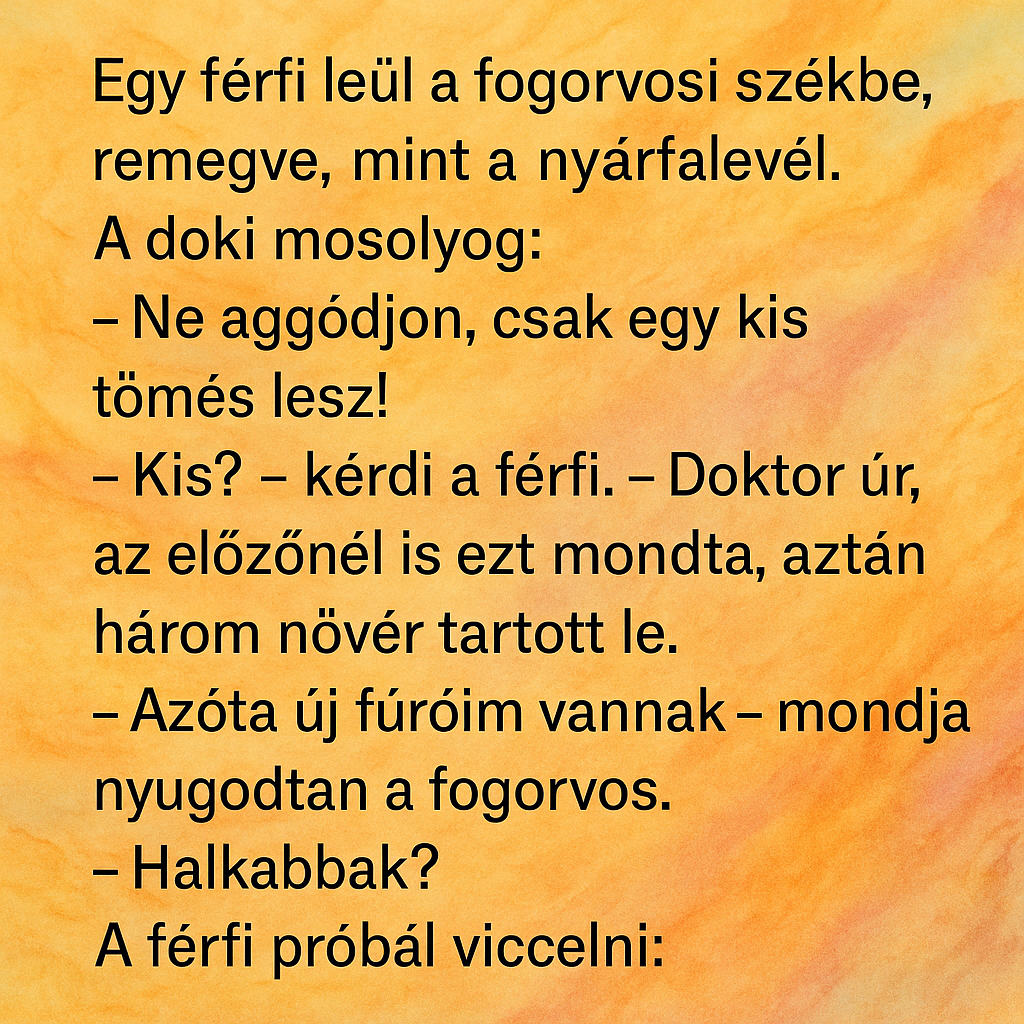 – Doktor úr, maga húz fogat fájdalom nélkül?