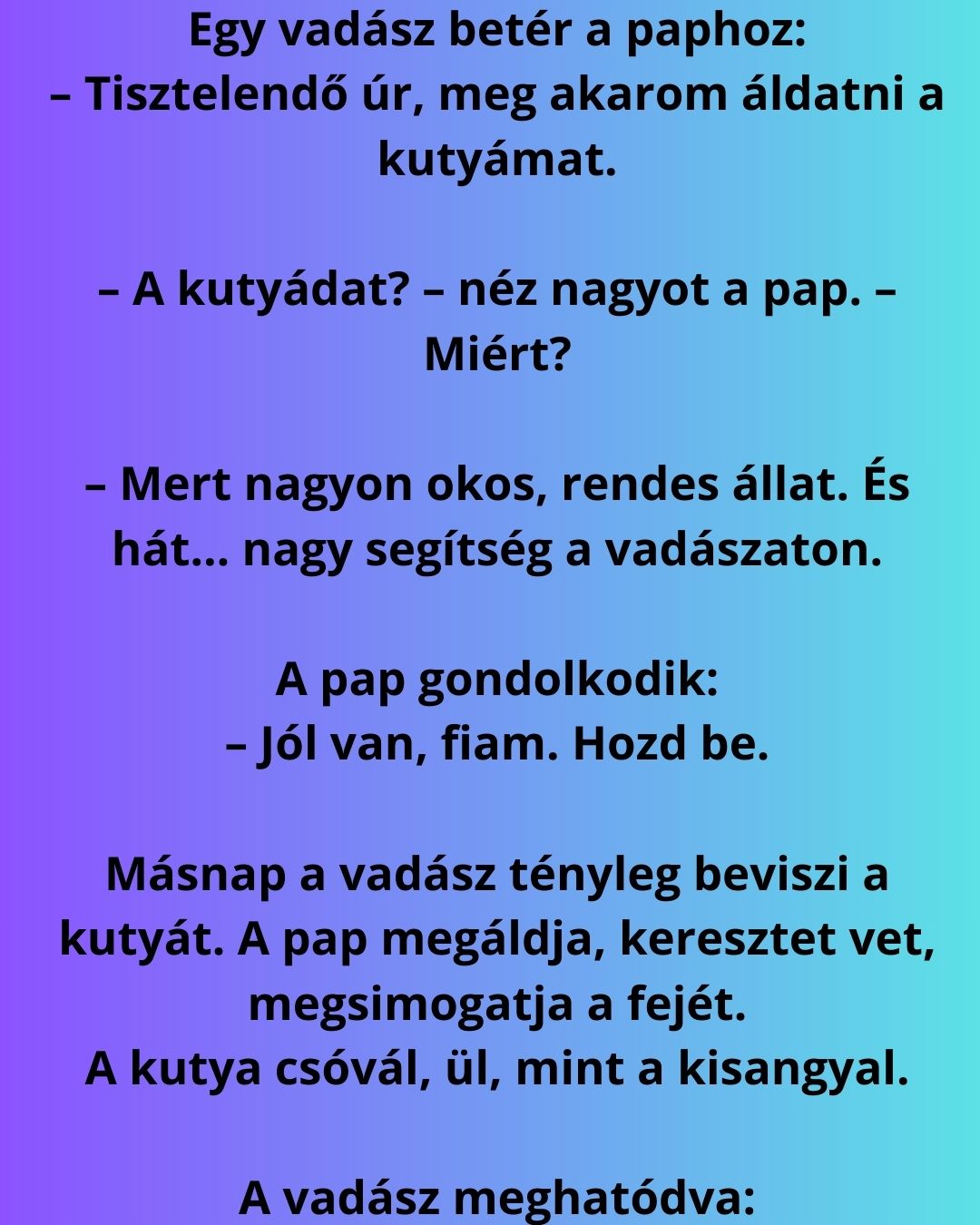 – A kutyádat? – néz nagyot a pap. – Miért?