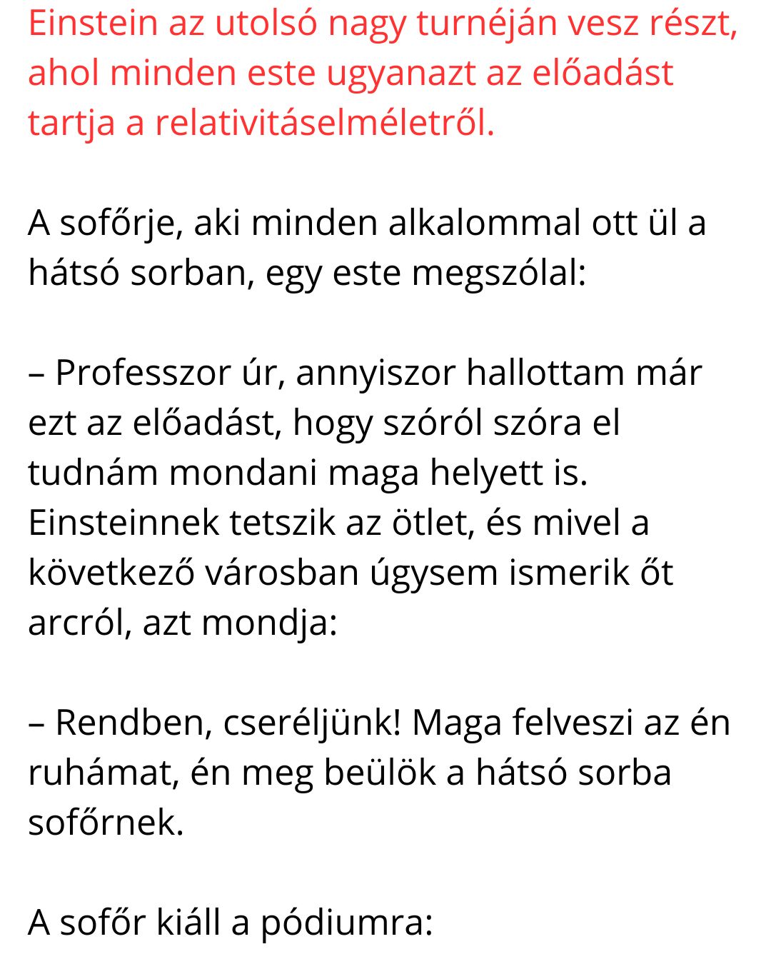 A sofőr kiáll a pódiumra, és hibátlanul, zseniálisan ledarálja az egész tudományos szöveget.