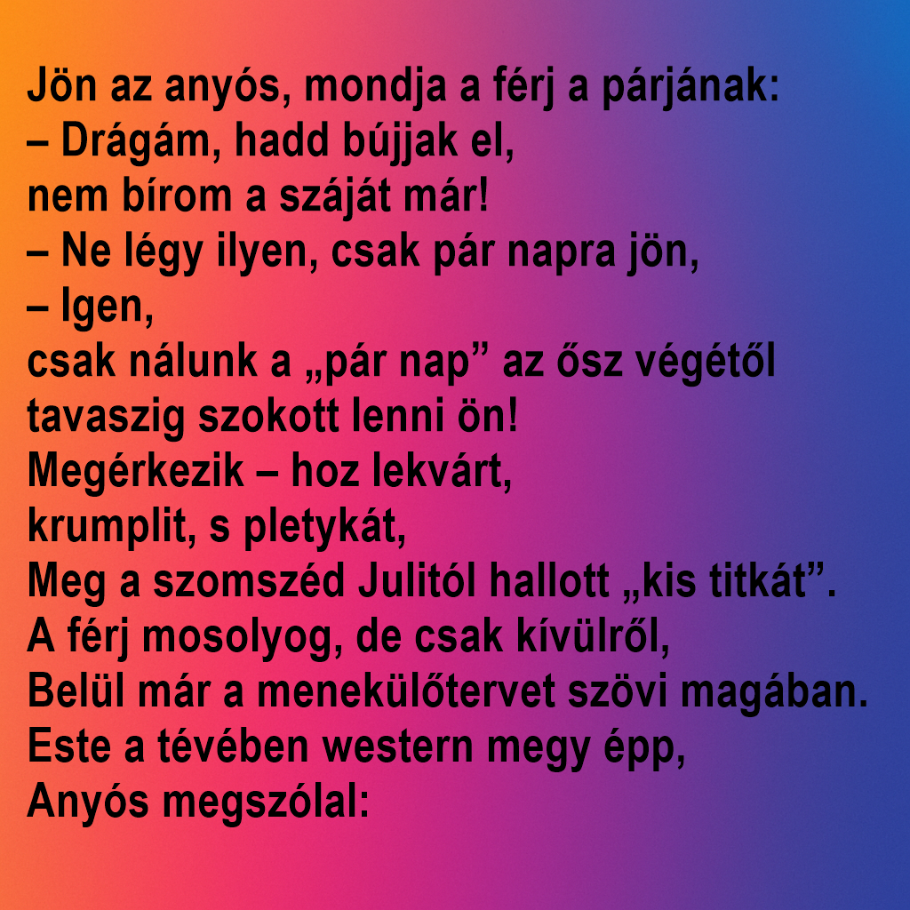 3️⃣ Anyós: – Fiam, a lányom sokat panaszkodik rád!