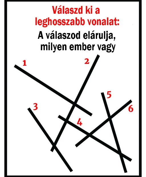 Hat különböző vonalat látsz, mindegyik számmal jelölve. A feladat egyszerűnek tűnik: válaszd ki azt, amelyik szerinted a leghosszabb.