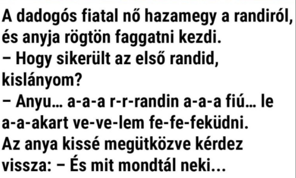 – Anyu… a-a-a r-r-randin a-a-a fiú… le a-a-akart ve-ve-lem fe-fe-feküdni.
